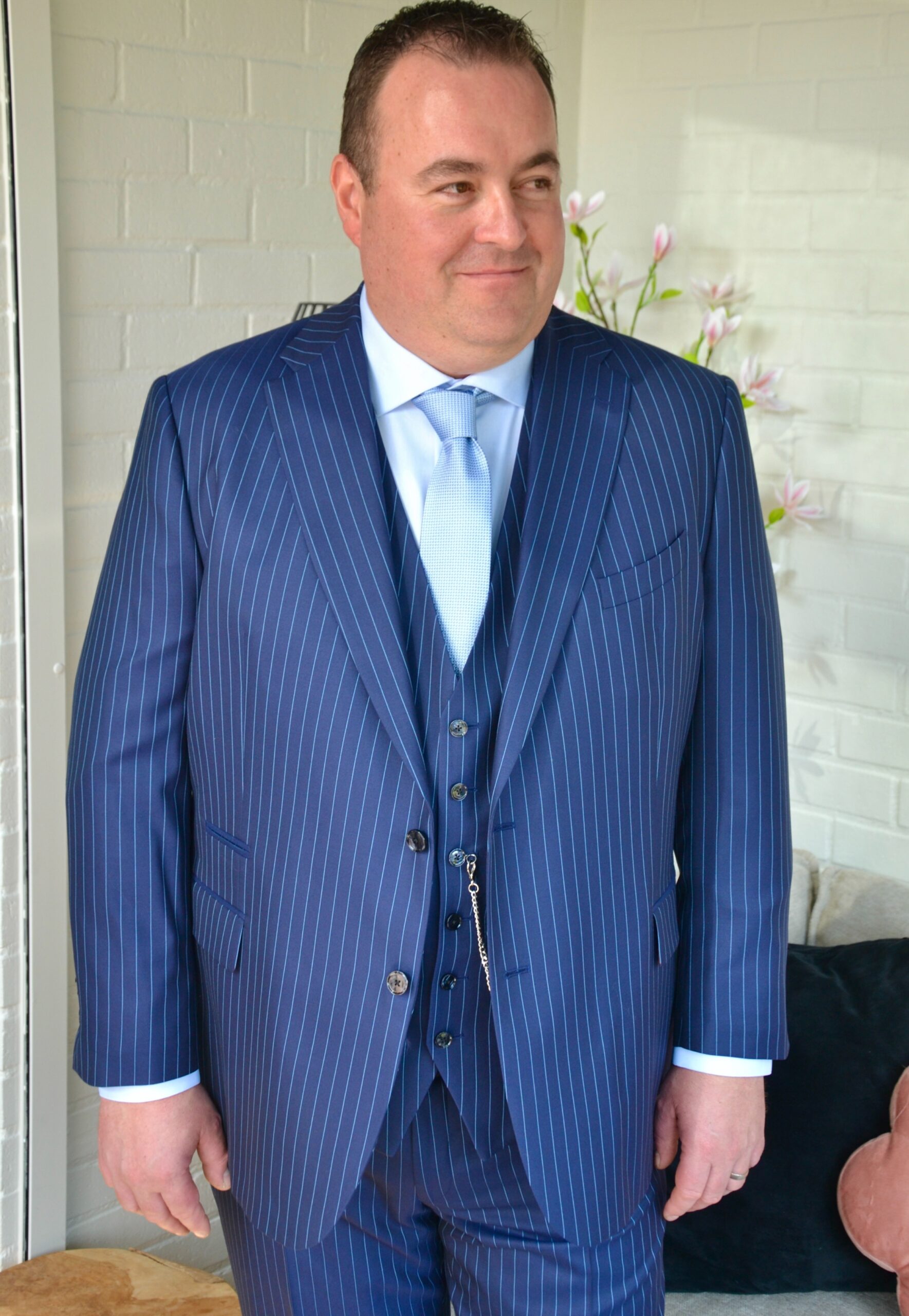 Phil'Suits: 3-delig blauw gestreept kostuum op maat. P/S 🥂